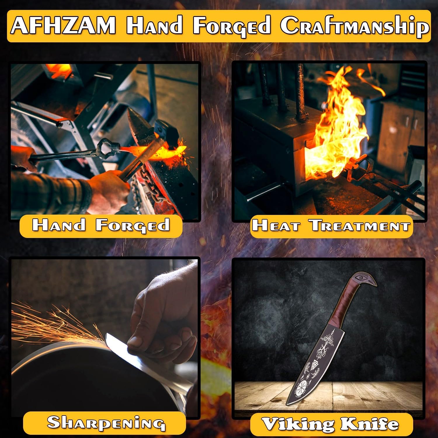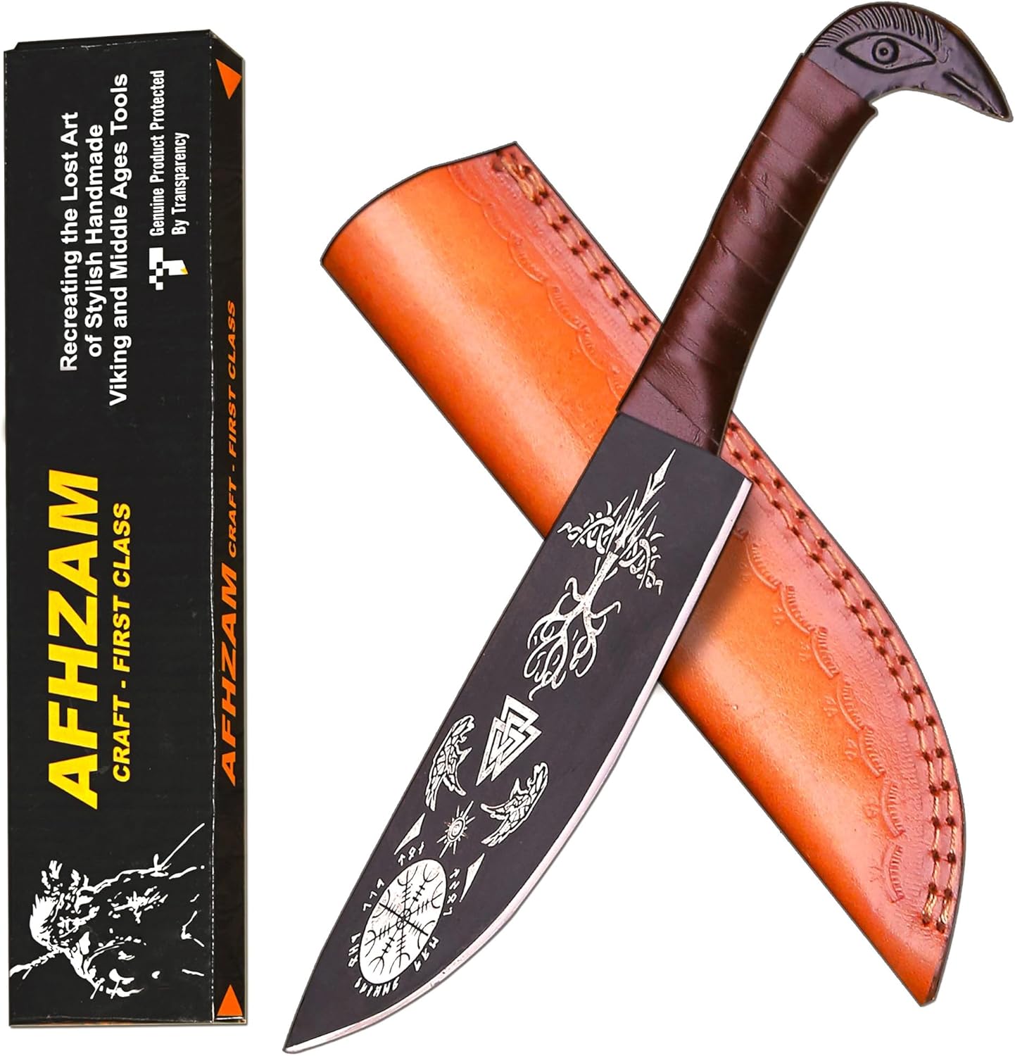 ★ HANDFORGED CONSTRUCTION ★ | Construct To Last & Designed To Perform! Each Viking Knife features a Hand Forged Full Tang Construction. High Quality Carbon Steel Blade With Leather Wrap on Handle.